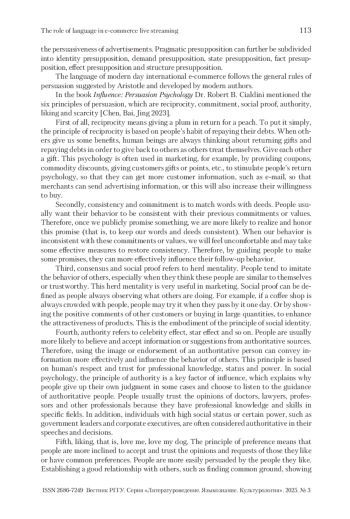 С развитием интернет-технологий и влиянием эпидемии COVID-19 прямые трансляции интернет-торговли, как новый метод маркетинга, были положительно восприняты потребителями. Однако стоит отметить, что различия в стилях речи ведущих во время прямого эфира также будут влиять на продажи товаров. Основываясь на теории убеждения и модели убеждения Аристотеля, выдвинутой Чалдини и другими, в данной работе в основном изучается взаимосвязь между средствами, используемыми в процессе маркетинговой деятельности в электронной коммерции, и продажами продукции. Исследование показывает, что для потребителей в процессе рекламы и маркетинга товаров шесть теорий убеждения, выдвинутых Чалдини, и риторика логоса, пафоса и этоса играют положительную роль в маркетинге товаров и способствуют повышению коэффициента конверсии покупки товаров.