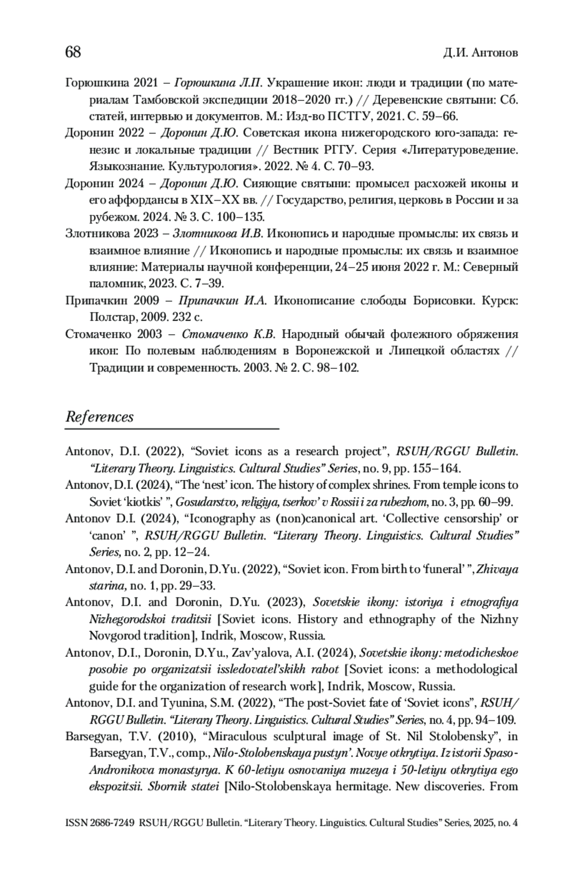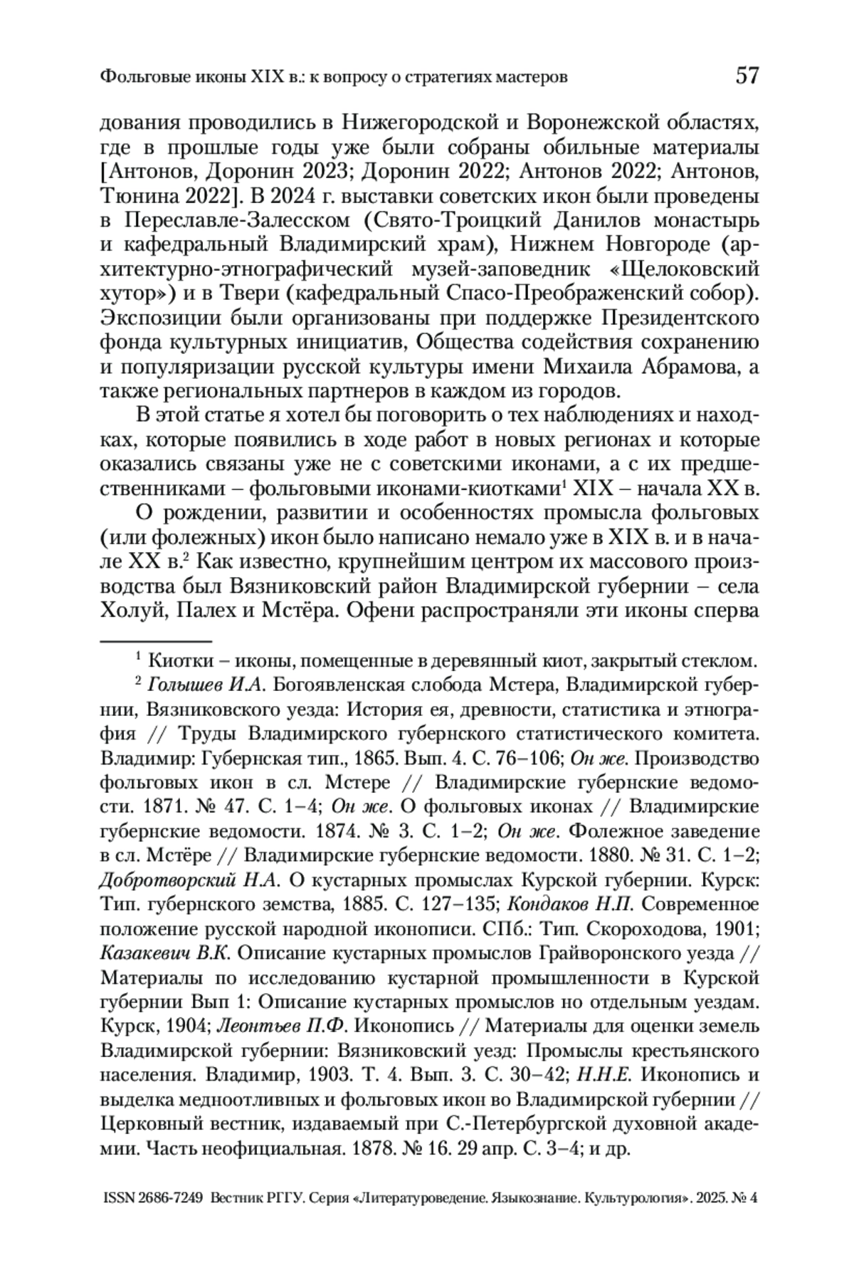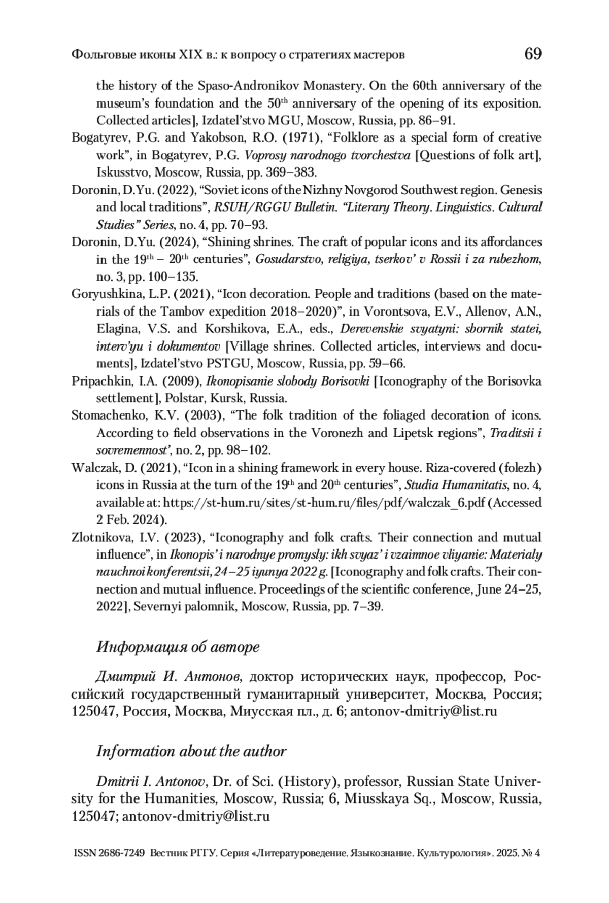 АНТОНОВ Д. И. ФОЛЬГОВЫЕ ИКОНЫ XIX В.: К ВОПРОСУ О СТРАТЕГИЯХ МАСТЕРОВ // ВЕСТНИК РГГУ. СЕРИЯ «ЛИТЕРАТУРОВЕДЕНИЕ. ЯЗЫКОЗНАНИЕ. КУЛЬТУРОЛОГИЯ». 2025. № 4