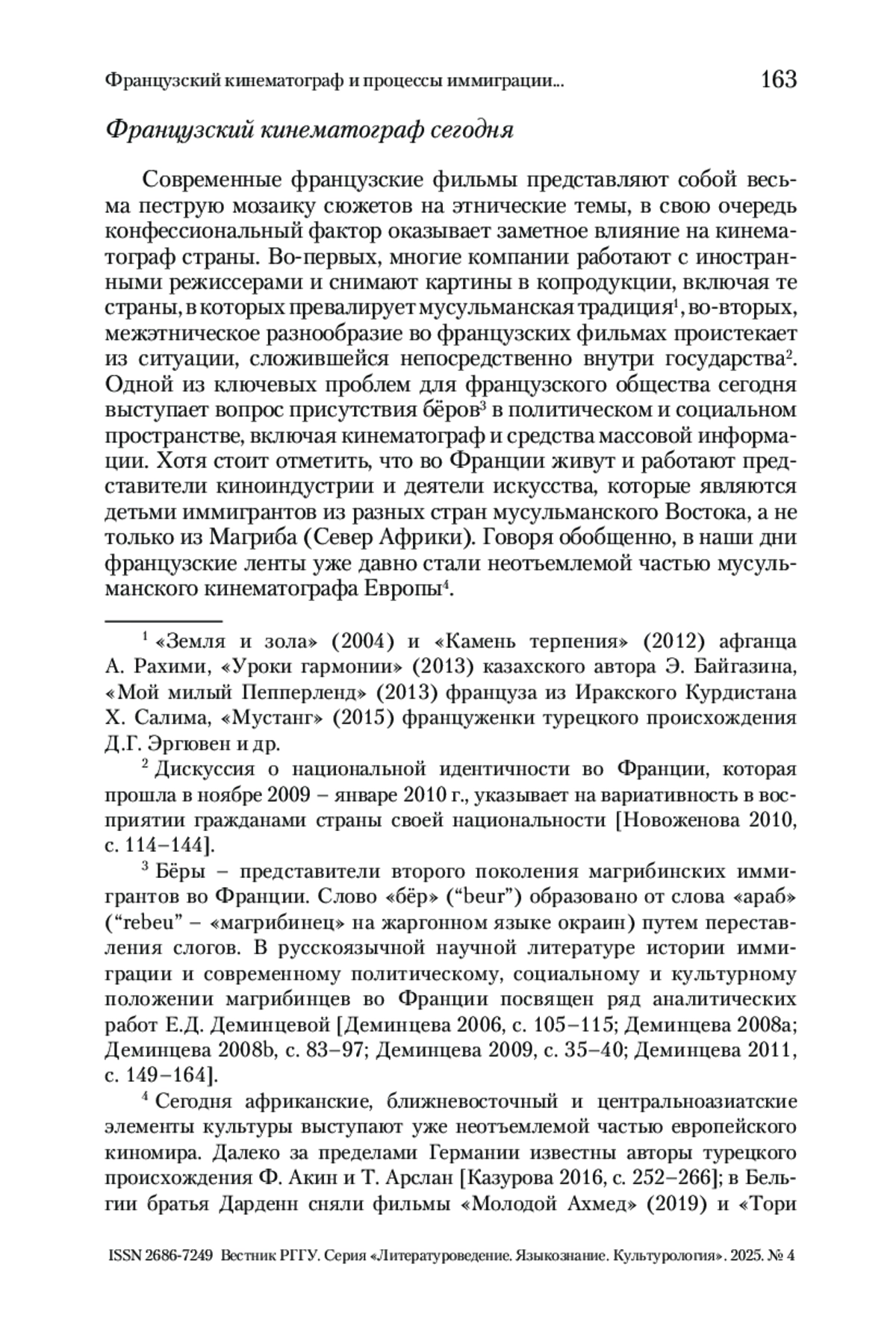 3. Деминцева 2006 - Деминцева Е.Б. Иммигрантские сообщества: опыт Франции // Россия в глобальной политике. 2006. Т. 4. № 5. С. 105-115.