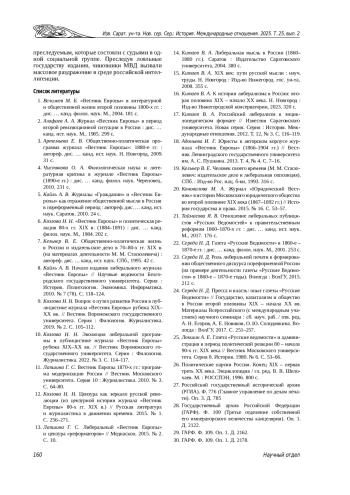 10. Козлова Н. Н. Эволюция либеральной программы в публицистике журнала “Вестник Европы” рубежа XIX-XX вв. // Вестник Воронежского государственного университета. Серия: Филология. Журналистика. 2022. № 3. С. 114-117. EDN: KELENP