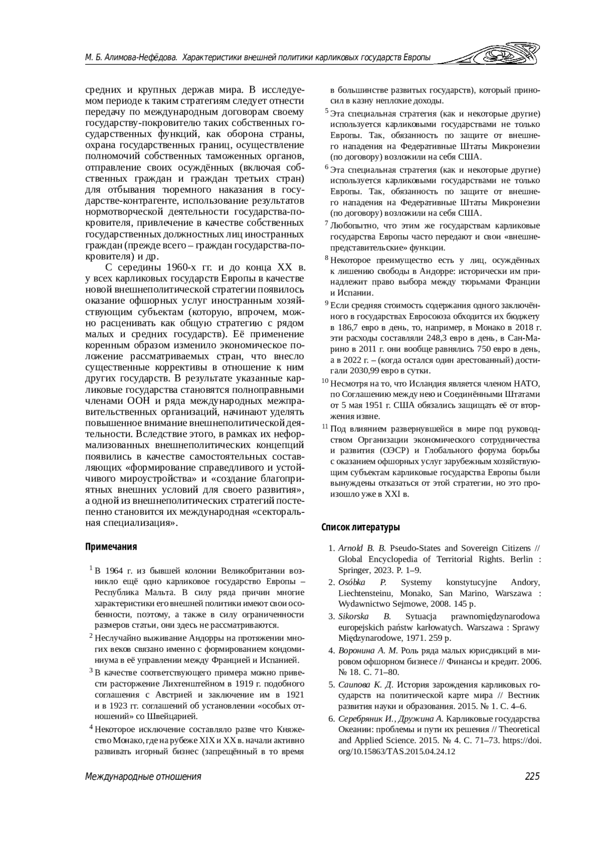 5. Саипова К. Д. История зарождения карликовых государств на политической карте мира // Вестник развития науки и образования. 2015. № 1. С. 4-6. EDN: TSZMKF