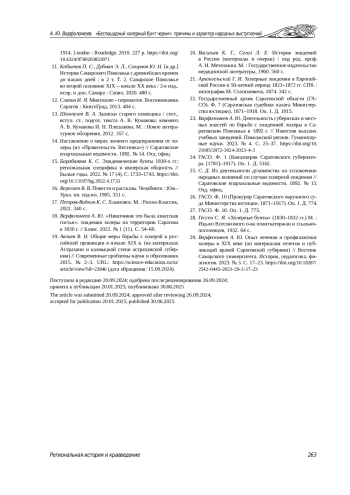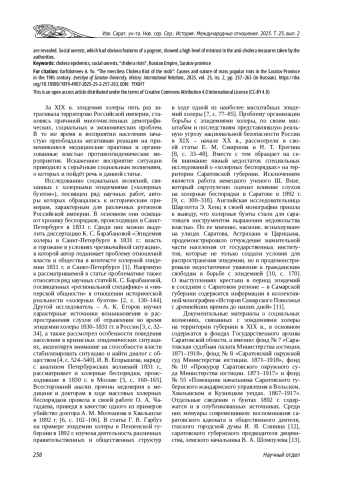 18. Варфоломеев А. Ю. “Навязчивая это была азиатская гостья”: эпидемия холеры на территории Саратова в 1830 г. // Базис. 2022. № 1 (11). С. 54-60. EDN: PQWIME