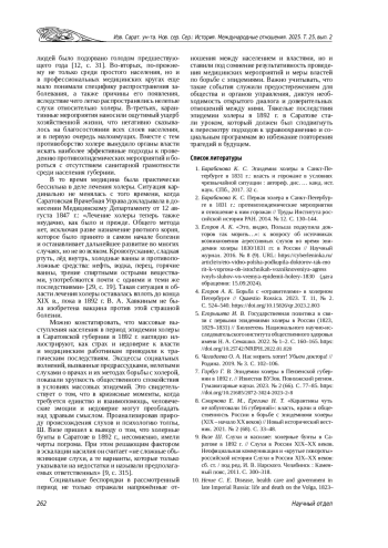 7. Гарбуз Г. В. Эпидемия холеры в Пензенской губернии в 1892 г. // Известия ВУЗов. Поволжский регион. Гуманитарные науки. 2023. № 2 (66). С. 77-85. DOI: 10.21685/2072-3024-2023-2-8 EDN: MRMMVI