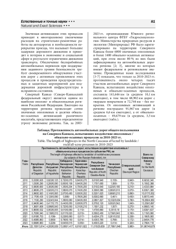 7. Разумов В. В., Залиханов М. Ч., Разумова Н. В., Богданова Н. Д., Шагин С. И. Активность и опасность обвально-осыпных процессов на Транскавказской автомагистрали (Республика Северная Осетия - Алания) в ХХI в. // ГеоРиск. 2023. Т. 17. № 2. С. 8-23.