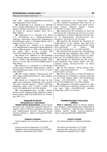 19. Аржанухина С. П., Кочетков А. В., Козин А. С., Стрижевский Д. А. Совершенствование структуры отраслевой диагностики федеральных автомобильных дорог // Интернет-журнал Науковедение. 2012. № 4(13). С. 1-15.