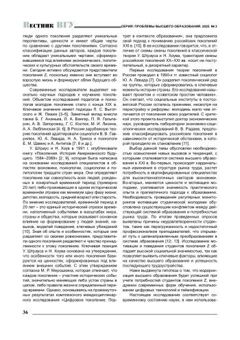 10. Мирошкина М. Р. Интерпретации теории поколений в контексте российского образования /М. Р. Мирошкина // Ярославский педагогический вестник. - 2017. - № 6. - С. 30-35.