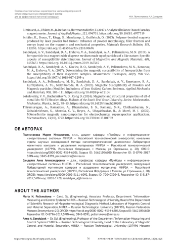 23. Sandulyak, A. V., Sandulyak, D. A., Ershova, V. A., Sandulyak, A. A., Polismakova, M. N. (2019). A ferroparticle in a magnetizable disperse medium made up of particles of a like nature: Specific aspects of susceptibility determination. Journal of Magnetism and Magnetic Materials, 488, 1653651. DOI: 10.1016/j.jmmm.2019.165365 EDN: DUOQPN