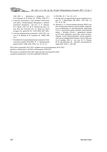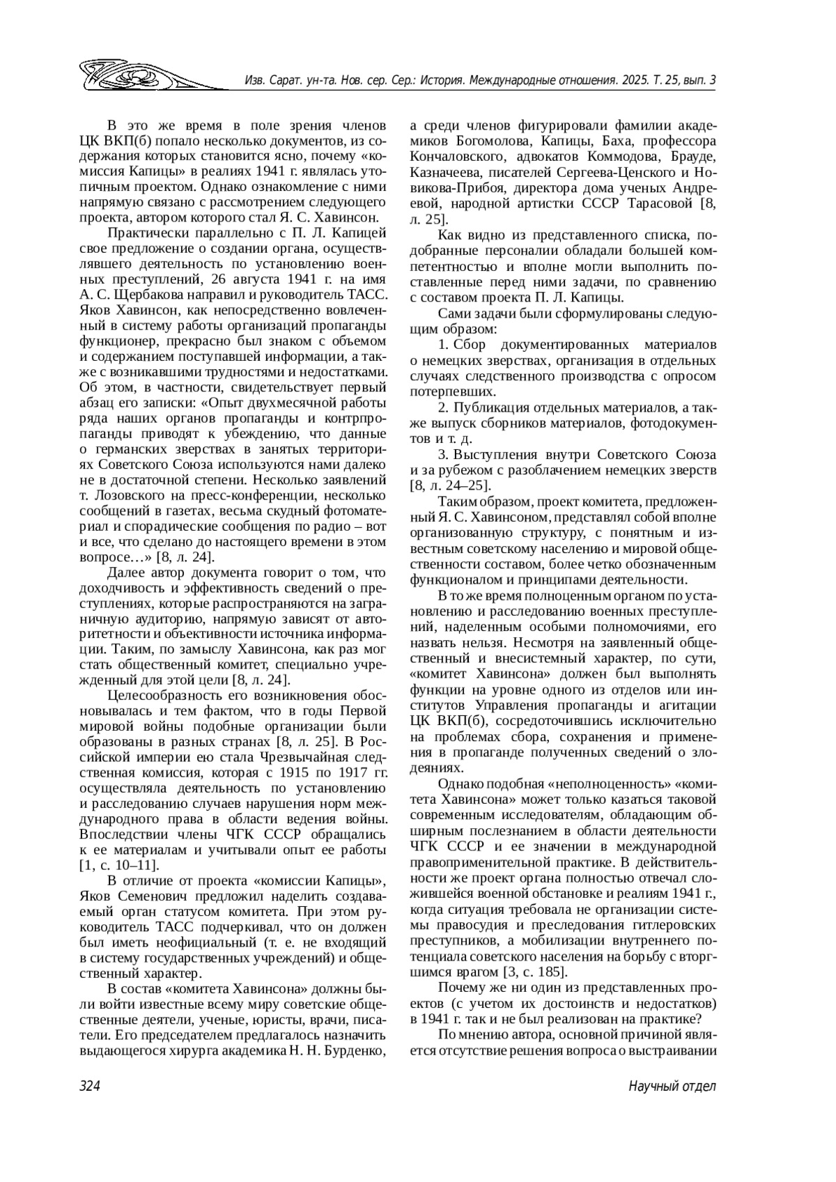 ЛАКИЗЮК А. А. НА ПУТИ СОЗДАНИЯ ЧГК СССР: ПРОЕКТЫ ОРГАНИЗАЦИИ СПЕЦИАЛЬНЫХ ОРГАНОВ ПО УСТАНОВЛЕНИЮ И РАССЛЕДОВАНИЮ ЗЛОДЕЯНИЙ, СОВЕРШЕННЫХ ГИТЛЕРОВЦАМИ НА ОККУПИРОВАННЫХ ТЕРРИТОРИЯХ СССР В 1941 Г. // ИЗВЕСТИЯ САРАТОВСКОГО УНИВЕРСИТЕТА. НОВАЯ СЕРИЯ. СЕРИЯ: ИСТОРИЯ. МЕЖДУНАРОДНЫЕ ОТНОШЕНИЯ. 2025. Т. 25 № 3