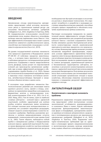 Органические отходы животноводства одновременно представляют собой источник экологического риска и стратегически важный ресурс для получения биологически активных удобрений (Abdugheni et al., 2023; Alegbeleye & Sant’Ana, 2020). Их нерациональное использование способствует загрязнению почв, водных об