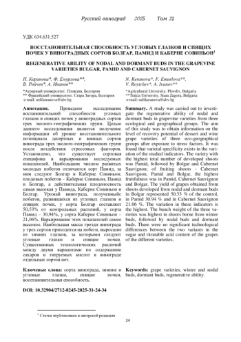 7. Тодоров Х., Анков С. Развитие и плодоношение отдельных видов почек после „повреждения“ главных почек зимних глазков // Виноградарство и виноделие. 1990. № 2, С. 10–14.