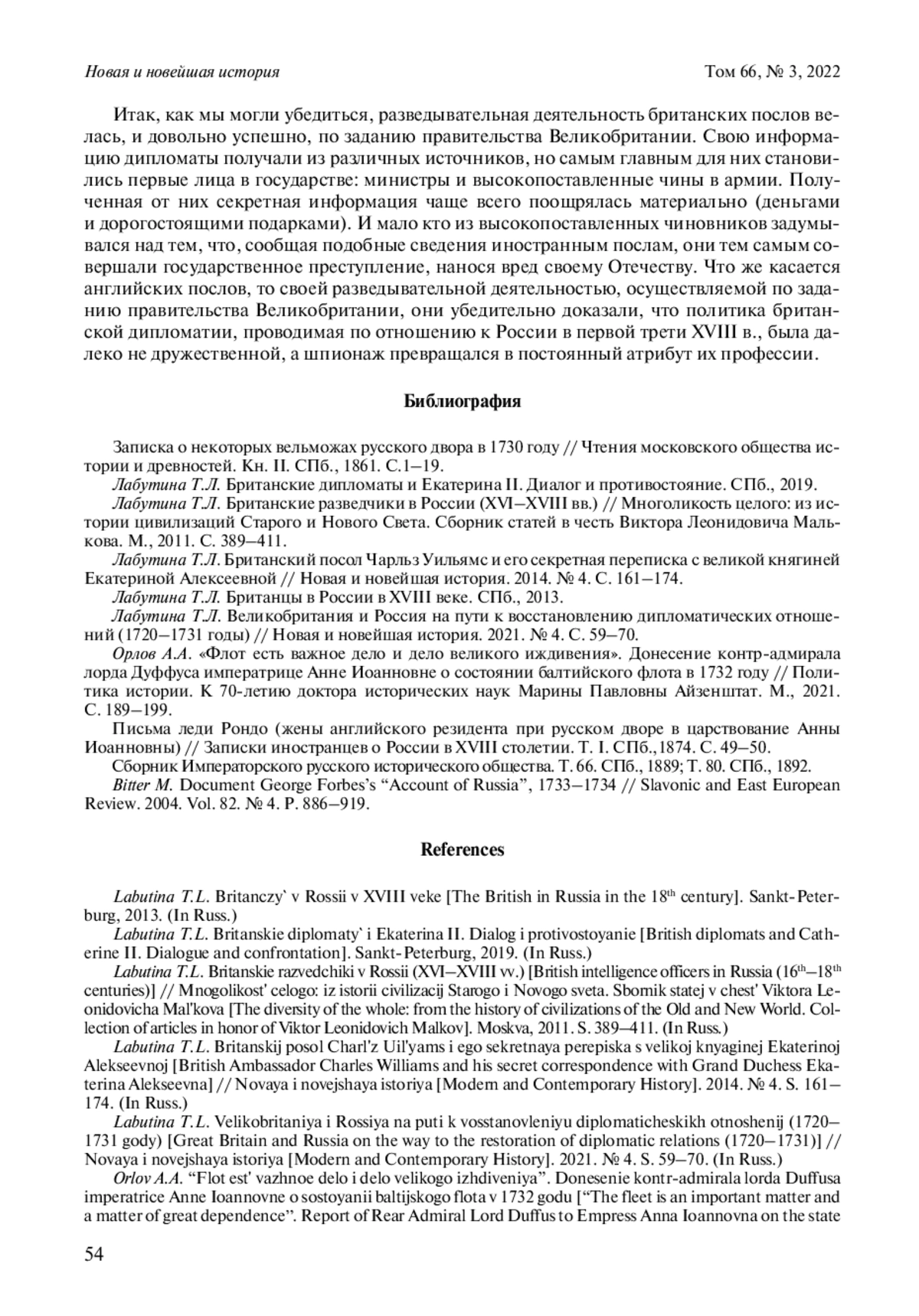 6. Лабутина Т.Л. Великобритания и Россия на пути к восстановлению дипломатических отношений (1720-1731 годы) // Новая и новейшая история. 2021. № 4. С. 59-70. EDN: TBZNLI