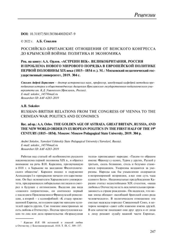 2. Орлов А.А. Союз Петербурга и Лондона. Российско-британские отношения в эпоху наполеоновских войн. М., 2005. EDN: SUPJHP