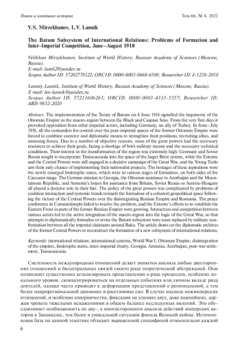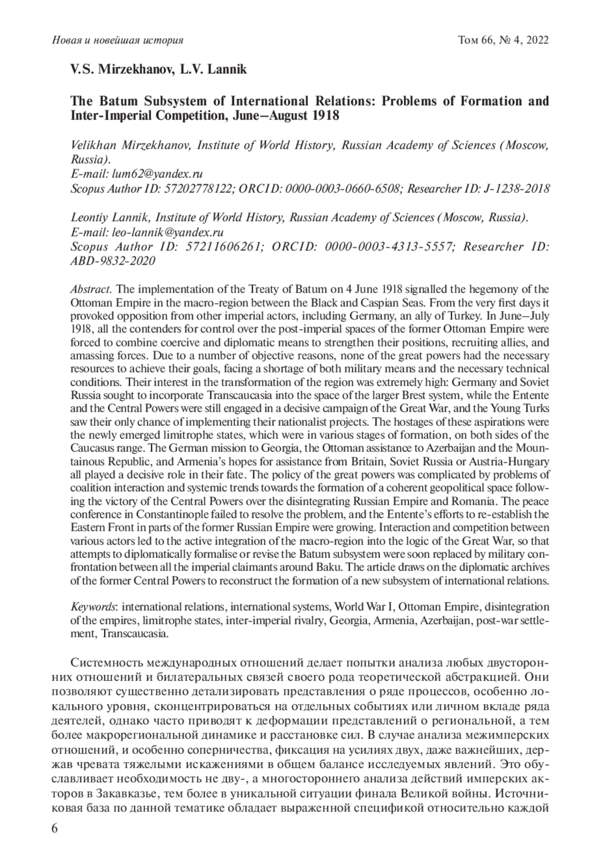 13. Мирзеханов В.С., Ланник Л.В. Батумская подсистема как пространство османской гегемонии в Закавказье: к постановке проблемы // Новая и новейшая история. 2021. № 3 (65). С. 5-22. EDN: DTYHSX