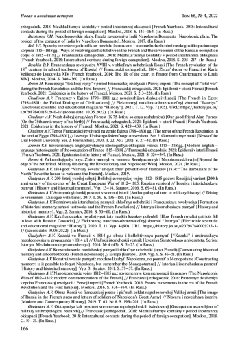 Становление военно-исторической антропологии как самостоятельного направления в историографии изменило традиционный образ войны. На место истории стратегических планов операций, сражений, маршалов и генералов, подсчета потерь пришла история повседневной жизни солдат, фронтового быта, эмоций втянутых в конфликт гражданских лиц и военных. «Человеческое измерение» войны стало актуальной темой, о чем свидетельствуют публикации последних двух десятков лет российских и зарубежных исследователей по истории революционных и наполеоновских войн. Пример тому – недавно изданная книга профессора из Йорка Алана Форреста «За кромкой поля боя. Жизнь военных во времена Революционных и Наполеоновских войн». Эта работа, как в свое время галерея арт-нуво, своеобразная коллекция образцов новых подходов и постановок проблемы в области военной истории. Войны эпохи Революции и Империи рассматриваются как первый в современной истории опыт «тотальной войны», затронувшей все слои общества и послужившей катализатором для процессов национальной самоидентификации. Такой подход позволяет ответить на ряд новых в военной истории вопросов: как формировались представления о мужественности, о гражданском долге, о патриотизме, какую роль в этих процессах играли женщины, какова была «культура войны» по отношению к военнопленным, как менялось отношение к рекрутским наборам, какова была судьба ветеранов после окончания войны, и т. д. Как показывает анализ современной историографии, поворот от чисто позитивистских подходов к конструктивизму, от истории сражений к презентациям личного жизненного опыта сопровождается стремлением соединить изучение прошлого с изучением исторической памяти об этом прошлом