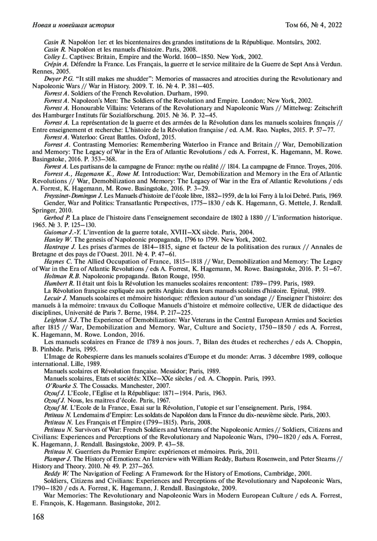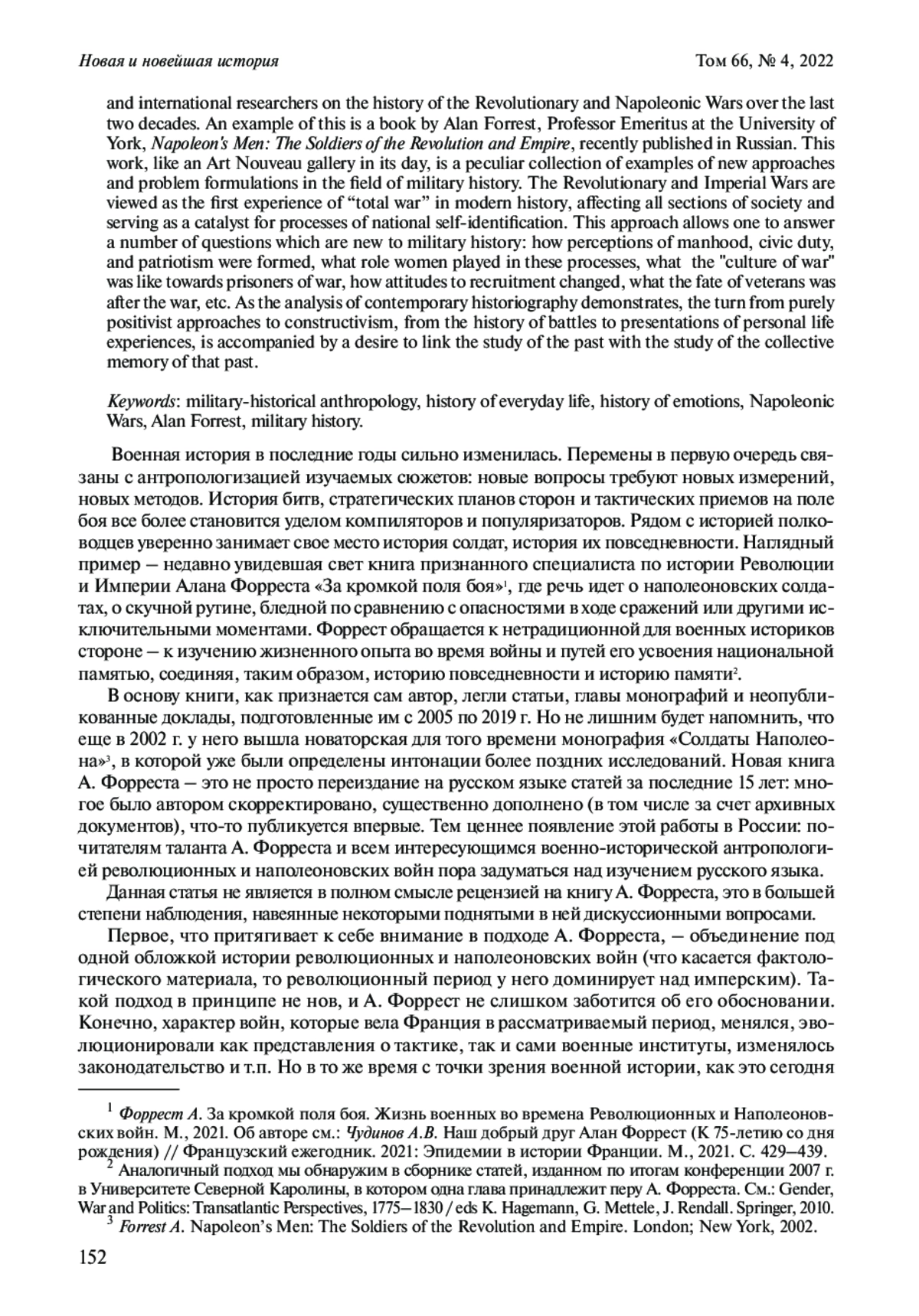 Ключевые фразы: военно-историческая антропология, история повседневности, ИСТОРИЯ ЭМОЦИЙ, наполеоновские войны, а форрест, ВОЕННАЯ ИСТОРИЯ, историография зарубежная