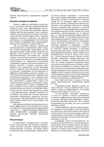 Ключевые фразы: сельское хозяйство, инновация, ПАТЕНТ, перетоки знаний, эффективность, ИНТЕНСИВНОСТЬ