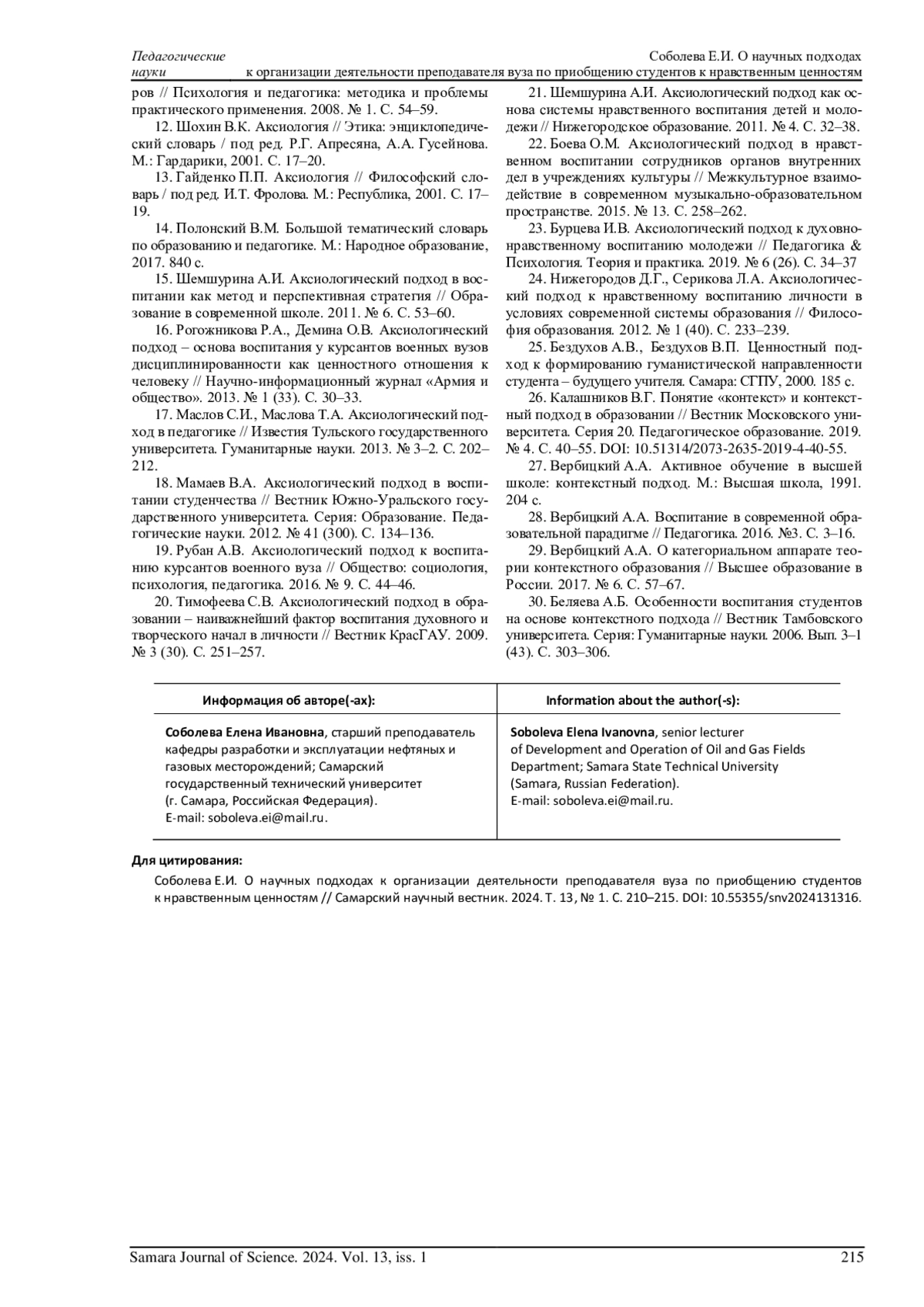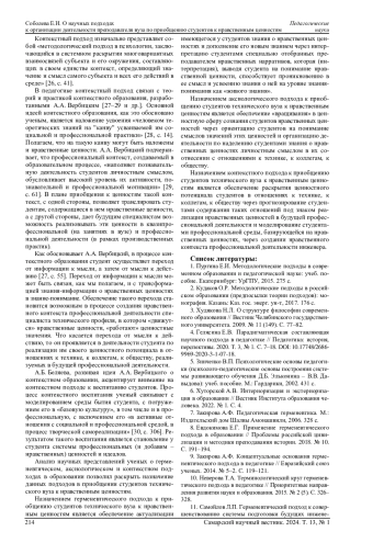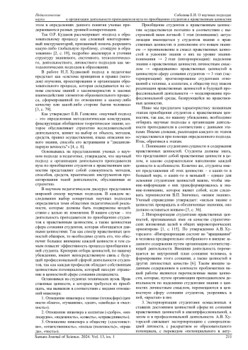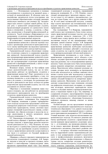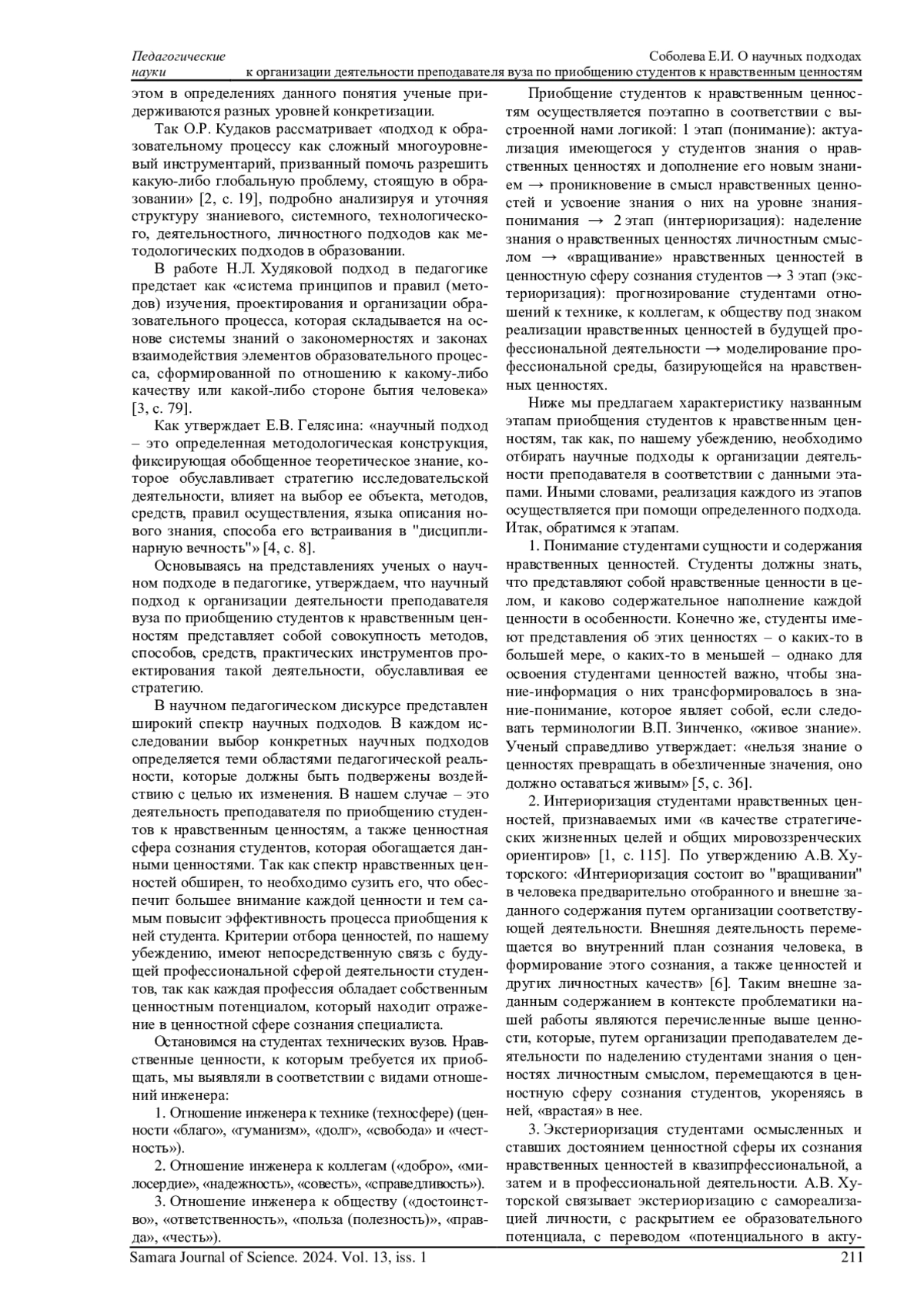 СОБОЛЕВА Е. И. О НАУЧНЫХ ПОДХОДАХ К ОРГАНИЗАЦИИ ДЕЯТЕЛЬНОСТИ ПРЕПОДАВАТЕЛЯ ВУЗА ПО ПРИОБЩЕНИЮ СТУДЕНТОВ К НРАВСТВЕННЫМ ЦЕННОСТЯМ // САМАРСКИЙ НАУЧНЫЙ ВЕСТНИК. 2024. ТОМ 13, № 1