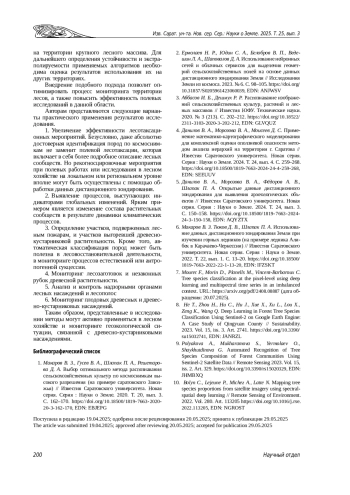 9. Polyakova A., Mukharamova S., Yermolaev O., Shaykhutdinova G. Automated Recognition of Tree Species Composition of Forest Communities Using Sentinel-2 Satellite Data // Remote Sensing 2023. Vol. 15, iss. 2. Art. 329. ,. DOI: 10.3390/rs15020329 EDN: JHMBXQ