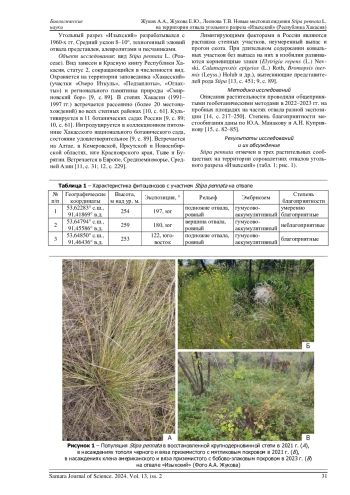 16. Куприянов А.Н., Куприянов О.А., Манаков Ю.А., Уфимцев В.И. Влияние субстрата на восстановление популяции Stipa capillata L. на породных отвалах // Сибирский экологический журнал. 2021. Т. 28, № 2. С. 242-251. DOI: 10.15372/sej20210209 EDN: BULLJP