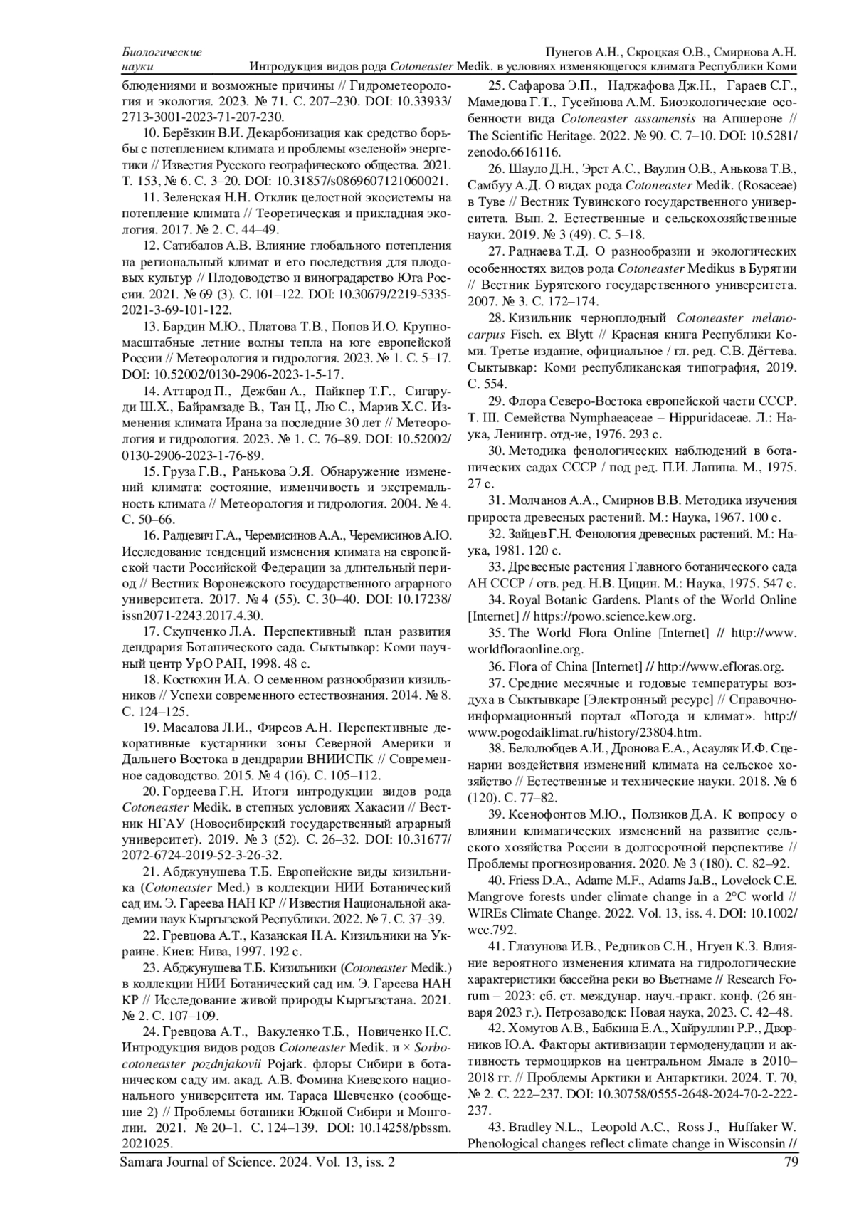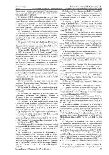 8. Фирсов Г.А., Фадеева И.В. Биоклиматическая цикличность и ее влияние на древесные растения в Санкт-Петербурге // Hortus Botanicus. 2023. Т. 18. С. 244-270. DOI: 10.15393/j4.art.2023.8686 EDN: TRQAPJ