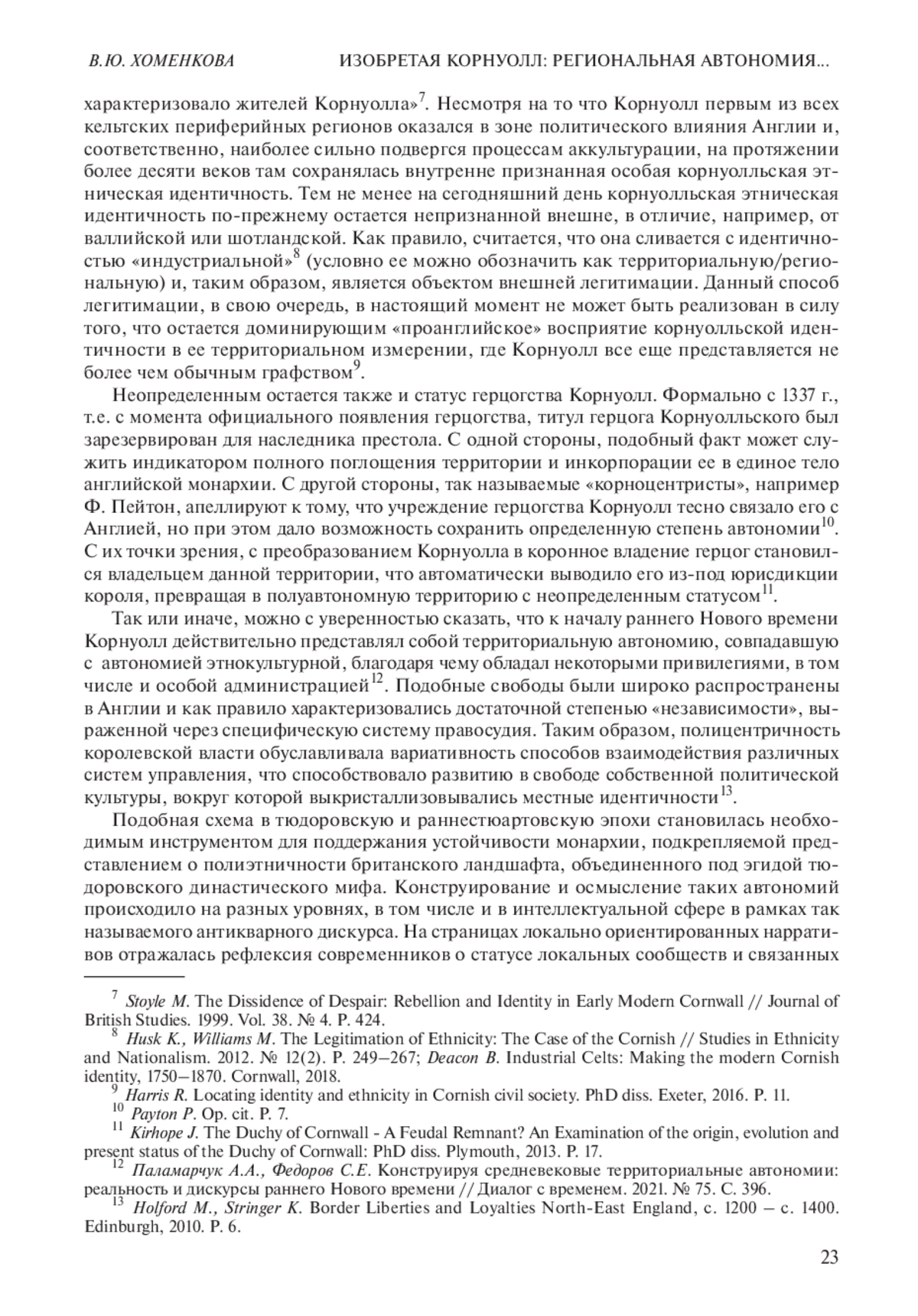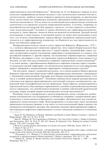 21. Husk K., Williams M. The Legitimation of Ethnicity: The Case of the Cornish // Studies in Ethnicity and Nationalism. 2012. № 12(2). P. 249-267.