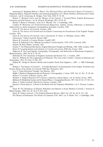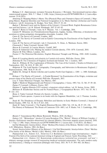 33. Stoyle M. Tudor Cornwall // The English Historical Review. 2004. Vol. 119. Iss. 48. P. 135-136.