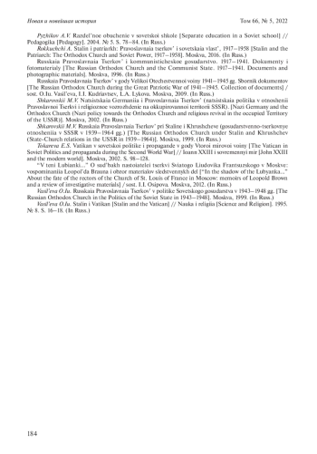 6. Васильева О.Ю. Русская Православная Церковь в политике Советского государства в 1943-1948 гг. М., 1999. EDN: WGWDZV