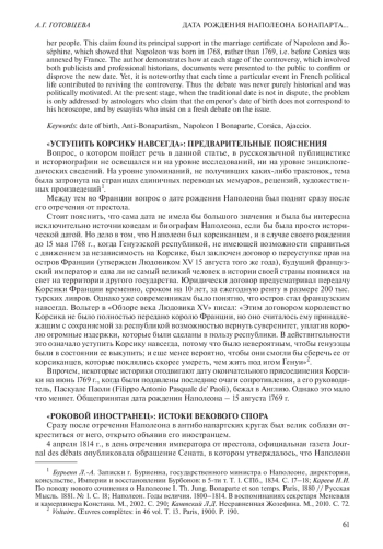 16. Chambertrand G. Quand Napoléon est-il vraiment né? // Le Figaro littéraire. 11-17.VIII.1969. № 1212. P. 6-11.
