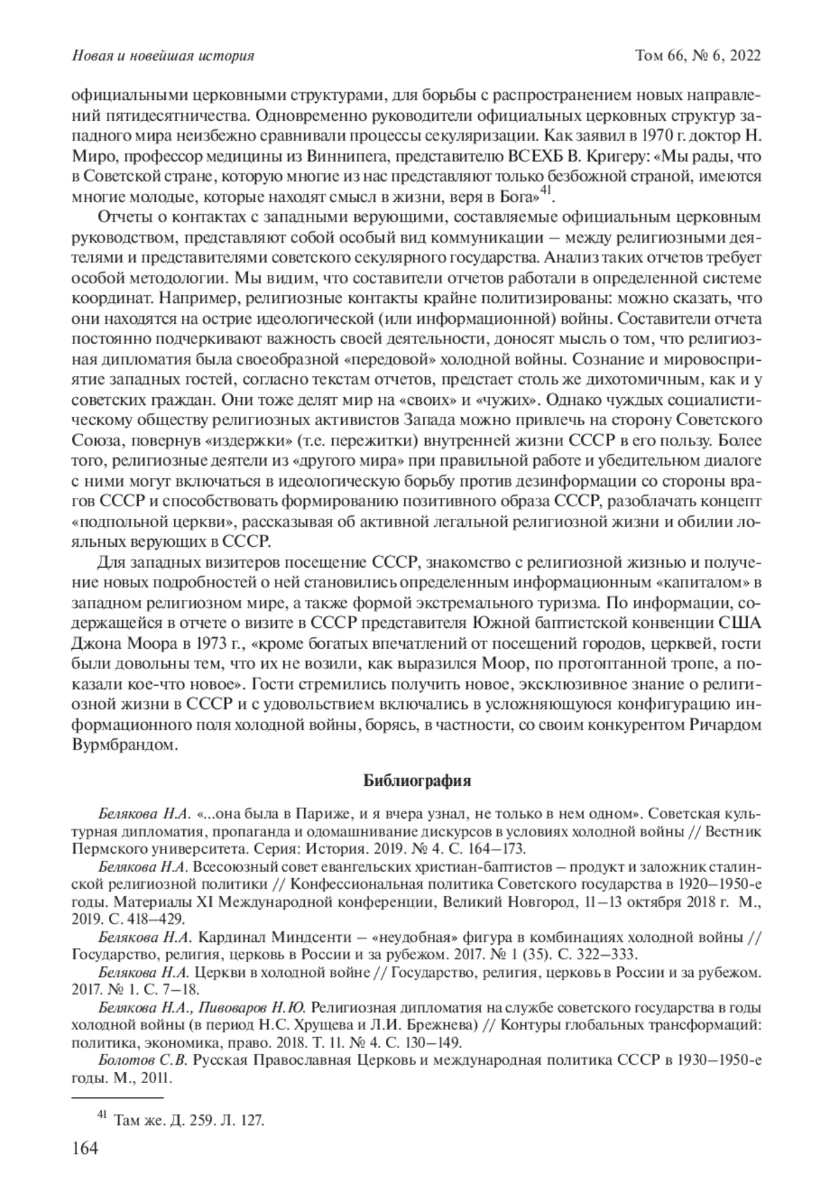 4. Белякова Н.А. Церкви в холодной войне // Государство, религия, церковь в России и за рубежом. 2017. № 1. С. 7-18. EDN: YLYKEB