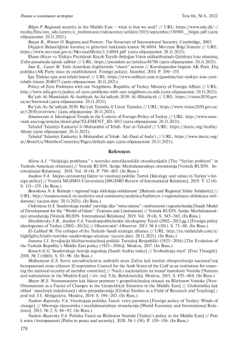 27. Simavoryan A. Ideological Trends in the Context of Foreign Policy of Turkey // URL: http://www.noravank.am/eng/articles/detail.php?ELEMENT_ID-5013 (дата обращения: 20.11.2021).