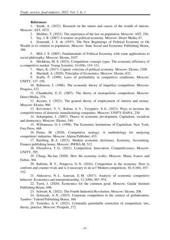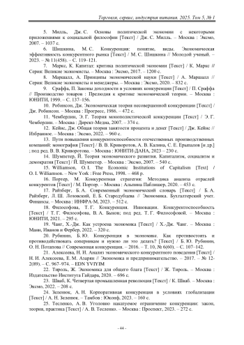 6. Шишкина, М. С. Конкуренция: понятие, виды. Экономическая эффективность конкурентного рынка [Текст] / М. С. Шишкина // Молодой ученый. – 2023. – № 11(458). – С. 119–121.