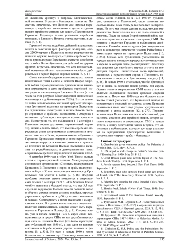 9. Тулузакова М.И., Буранок С.О. Иммиграционный кризис в Палестине (1933-1936) в отражении периодической печати США // Научный диалог. 2024. Т. 13, № 6. С. 515-531. DOI: 10.24224/2227-1295-2024-13-6-515-531 EDN: KGWZIC