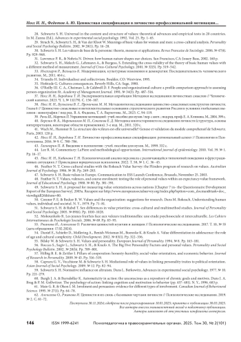 30. Schwartz S. H. Les valeurs de base de la personne: theorie, mesures et applications. Revue Francaise de Sociologie. 2006. № 47(4). Pp. 929–968.