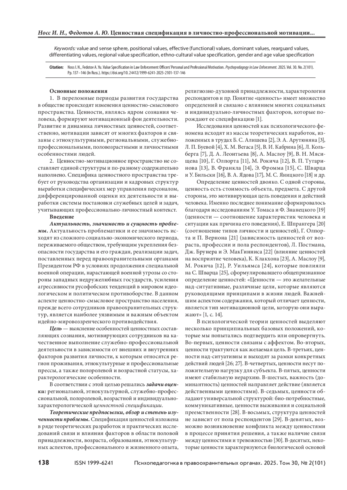 38. Носс И. Н., Булыгина В. Г., Проничева М. М. Методология исследования ценностно-смысловых конструктов личности. Глава 6 // Ценностно-смысловые и интеллектуальные основания стратегического развития России в условиях глобальных вызовов : монография / под ред. В. А. Фадеева, Т. А. Вархотова. М., 2023. С. 94–119.