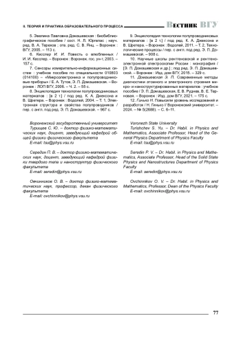 Ключевые фразы: ВОРОНЕЖСКИЙ ГОСУДАРСТВЕННЫЙ УНИВЕРСИТЕТ, физика, наука, образование, научная школа, э п домашевская