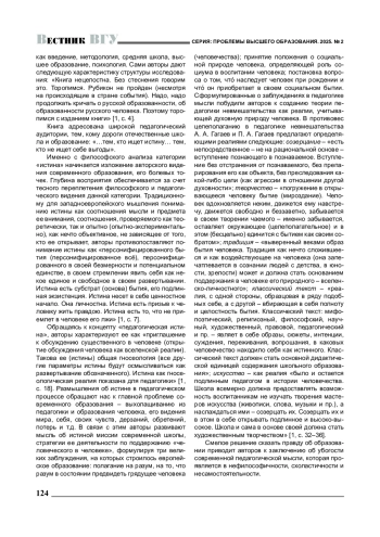 Именно с философского анализа категории «истина» начинается изложение авторского видения современного образования, его болевых точек. Глубина восприятия обеспечивается за счет тесного переплетения философского и педагогического видения данной категории. Традиционному для западноевропейского мышления пониманию истины как соотношения мысли и предмета ее внимания, соотношения, проверяемого как теоретически, так и опытно (опытно-экспериментально), как нечто объективное, не зависящее от того, кто ее открывает, авторы противопоставляют понимание истины как «персонифицированного бытия (персонифицированное всё), персонифицированного в своей безмерности и потенциальном единстве, в своем стремлении явить себя как некое единое и свободное в своем развертывании. Истина есть субстрат (основа) бытия, его подлинная экзистенция. Истина несет в себе ценностное начало. Она личностна. Истина есть призыв к человеку жить правдою. Истина есть то, что не приемлет в человеке его лжи» [1, с. 7].
