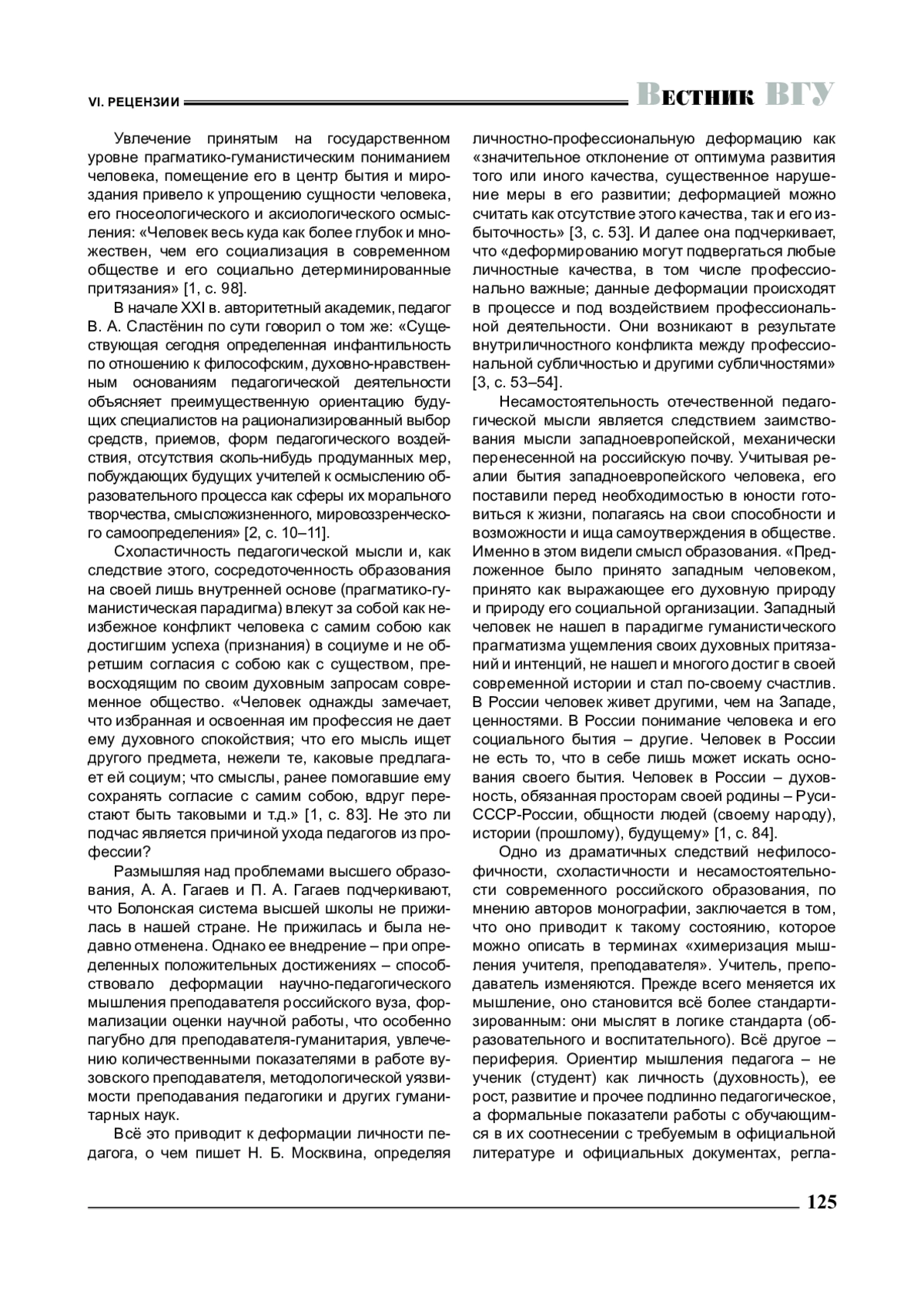 Представлена рецензия на монографию, посвященную актуальным проблемам современного отечественного педагогического образования, проанализированным авторами в философско-педагогическом контексте. Убогость современной педагогической мысли, по мнению авторов, проявляется в ее нефилософичности, схоластичности и несамостоятельности. Преодолеть их возможно через утверждение начал русского мировидения, сквозь призму которого человек неотделим от его национальных духовно-ценностных ориентиров; остановив выхолащивание из педагогики и образования человека.