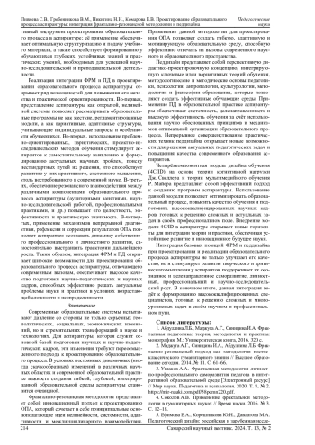В условиях динамично меняющегося мира современная система высшего образования, включая аспирантуру, сталкивается с необходимостью поиска новых, методологически обоснованных подходов к проектированию образовательных процессов.