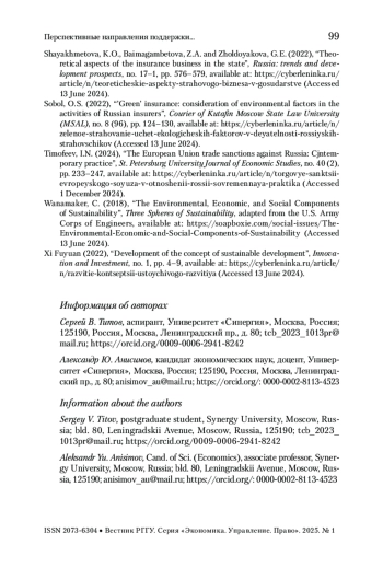 8. Измайлова 2022 - Измайлова М.А. Реализация ESG-стратегий российских компаний в условиях санкционных ограничений // МИР (Модернизация. Инновации. Развитие). 2022. № 2. URL: https://cyberleninka.ru/article/n/realizatsiya-esg-strategiy-rossiyskih-kompaniy-v-usloviyah-sanktsionnyh-ogranicheniy (дата обращения 1 декабря 2024).