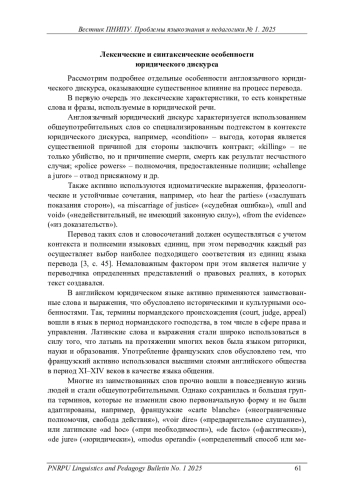 Статья: ОСОБЕННОСТИ ПЕРЕВОДА ТЕКСТОВ АНГЛОЯЗЫЧНОГО ЮРИДИЧЕСКОГО ДИСКУРСА (2025)