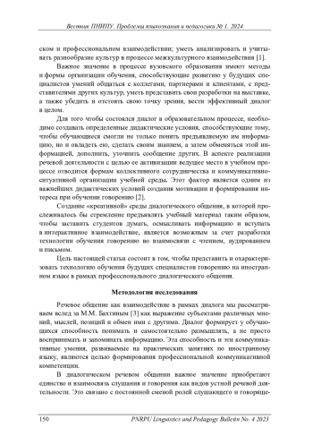 Выпускники политехнических вузов обладают широким спектром технических знаний, навыков и умений, но в процессе трудовой деятельности важны наряду с этим сформированные личностные и социальные качества специалиста. Профессия инженера предполагает, что он постоянно находится в процессе речевого общения как взаимодействия с другими: с коллегами, членами проектной команды, руководителями, клиентами, заказчиками и другими субъектами