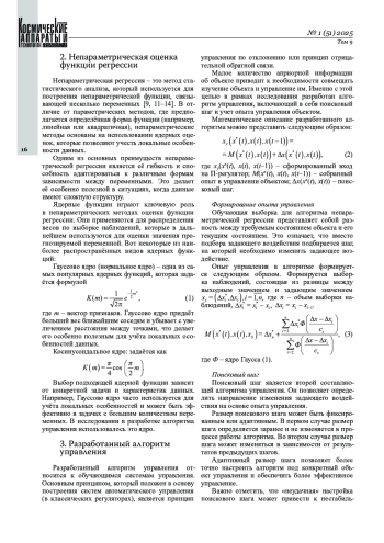 Ключевые фразы: п‑регулятор, система управления, непараметрическая оценка функции регрессии, переходный процесс, малые космические аппараты