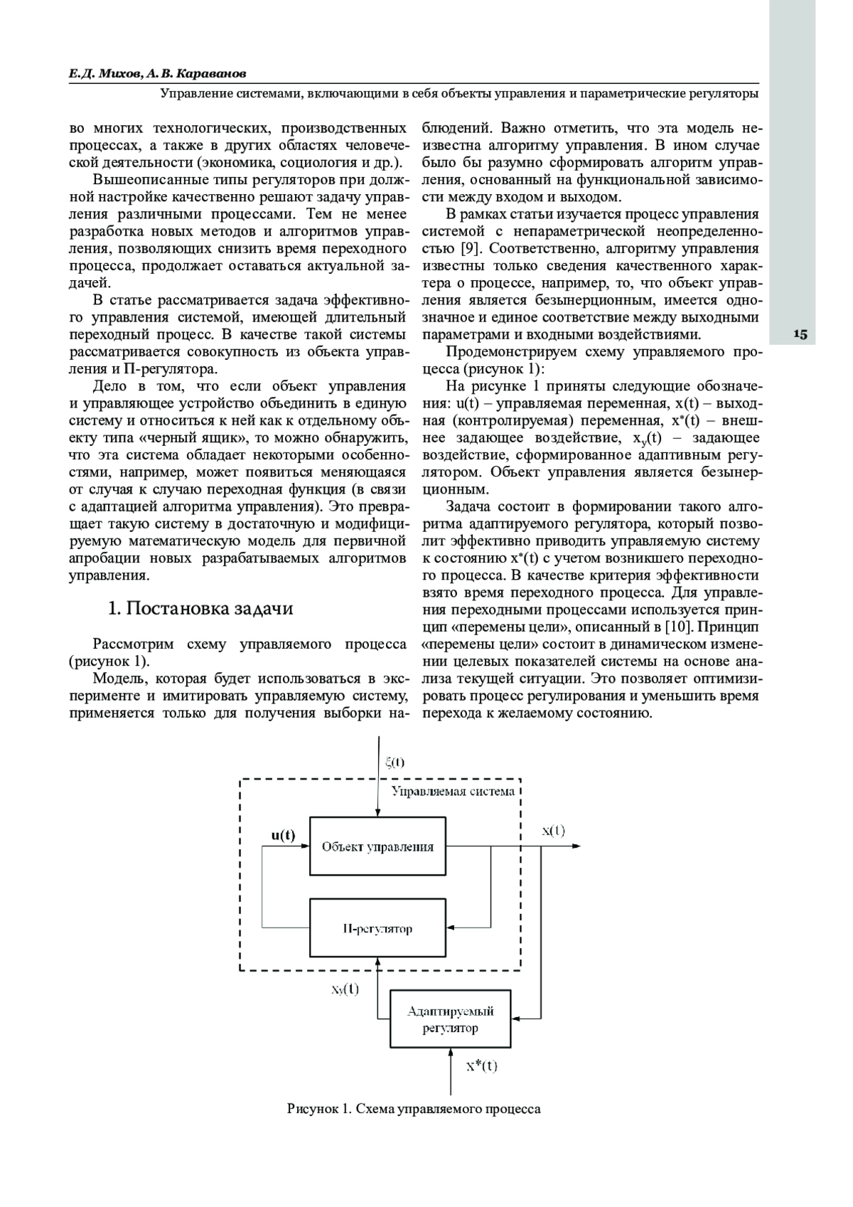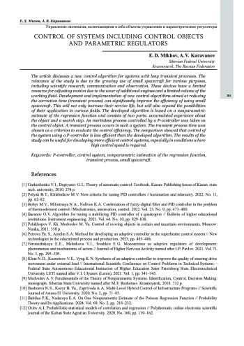 Статья: УПРАВЛЕНИЕ СИСТЕМАМИ, ВКЛЮЧАЮЩИМИ В СЕБЯ ОБЪЕКТЫ УПРАВЛЕНИЯ И ПАРАМЕТРИЧЕСКИЕ РЕГУЛЯТОРЫ (2025)