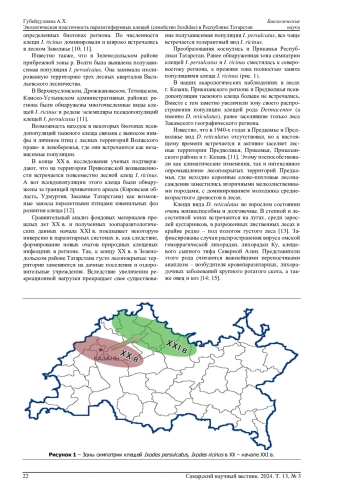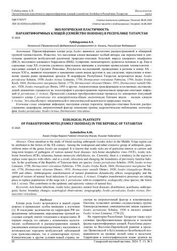 Паразитиформные клещи рода Ixodes являются достаточно распространенной и обширной группой членистоногих. Известно, что иксодовые клещи вызывают особый интерес как переносчики и длительные хранители возбудителей различных природно-очаговых болезней: вируса клещевого энцефалита (ВКЭ), иксодового клещевого боррелиоза (ИКБ), туляремии, моноцитарного эрлихиоза человека и др. Еще в сороковые годы XX столетия уделялось пристальное внимание к изучению кровососущих членистоногих - иксодовых клещей в Среднем Поволжье. Результаты исследований, проведенных в регионе в конце XX - начале XXI в., выявили тенденцию к замещению одних видов другими и, как следствие, переселение и изменение границ ранее привычных ареалов. В акарифауне Республики Татарстан встречаются виды: Ixodes persulcatus Schulze, 1930; Ixodes ricinus Linnaeus, 1758; Dermacentor reticulatus Fabricius, 1794; Ixodes lividus Koch, 1844; Dermacentor marginatus Sulzer, 1776; Dermacentor silvarum Olenev, 1931; Dermacentor nuttalli Olenev, 1928; Ixodes trianguliceps Birula, 1895 и другие. Антропогенная трансформация естественных лесонасаждений динамично отражается на зоогеографии и распространении переносчиков природно-очаговых инфекций ( I. persulcatus, I. ricinus ). Происходят сложные преобразовательные процессы по замещению популяций таежного клеща I. persulcatus его конкурентоспособным экологически близким видом - лесным клещом I. ricinus. Это способствует эпидемической и эпизоотической валентности природных очагов.