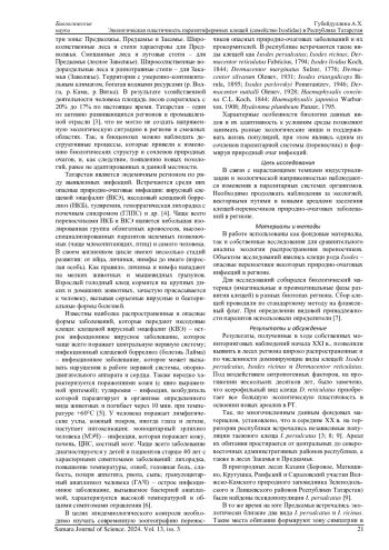 Клещи рода Ixodes встречаются в нашей стране широко и привлекают особое внимание к изучению [1]. В последние десятилетия на территории РФ инфекционные заболевания, передаваемые группой иксодовых клещей, имеют тенденцию к возрастанию.