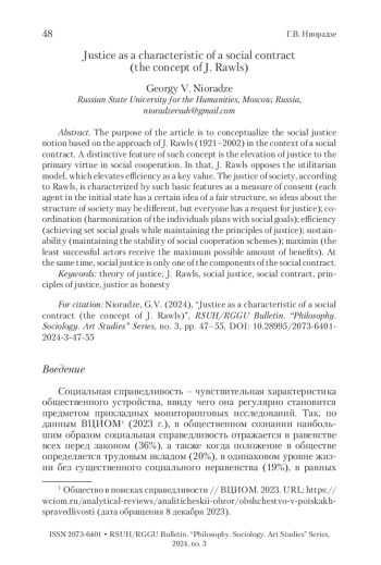 1. Борисова 2015 - Борисова П.А. К концепции социальной справедливости Дж. Роулза // Вестник РГГУ. Серия «Философия. Социология. Искусствоведение». 2015. № 2. С. 53-56. EDN VURVZP.