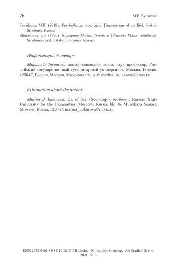 1. Журавлева 1993 - Журавлева Л.С. Княгиня Мария Тенишева. Смоленск: Смол. пед. ин-т, 1993. 235 с.