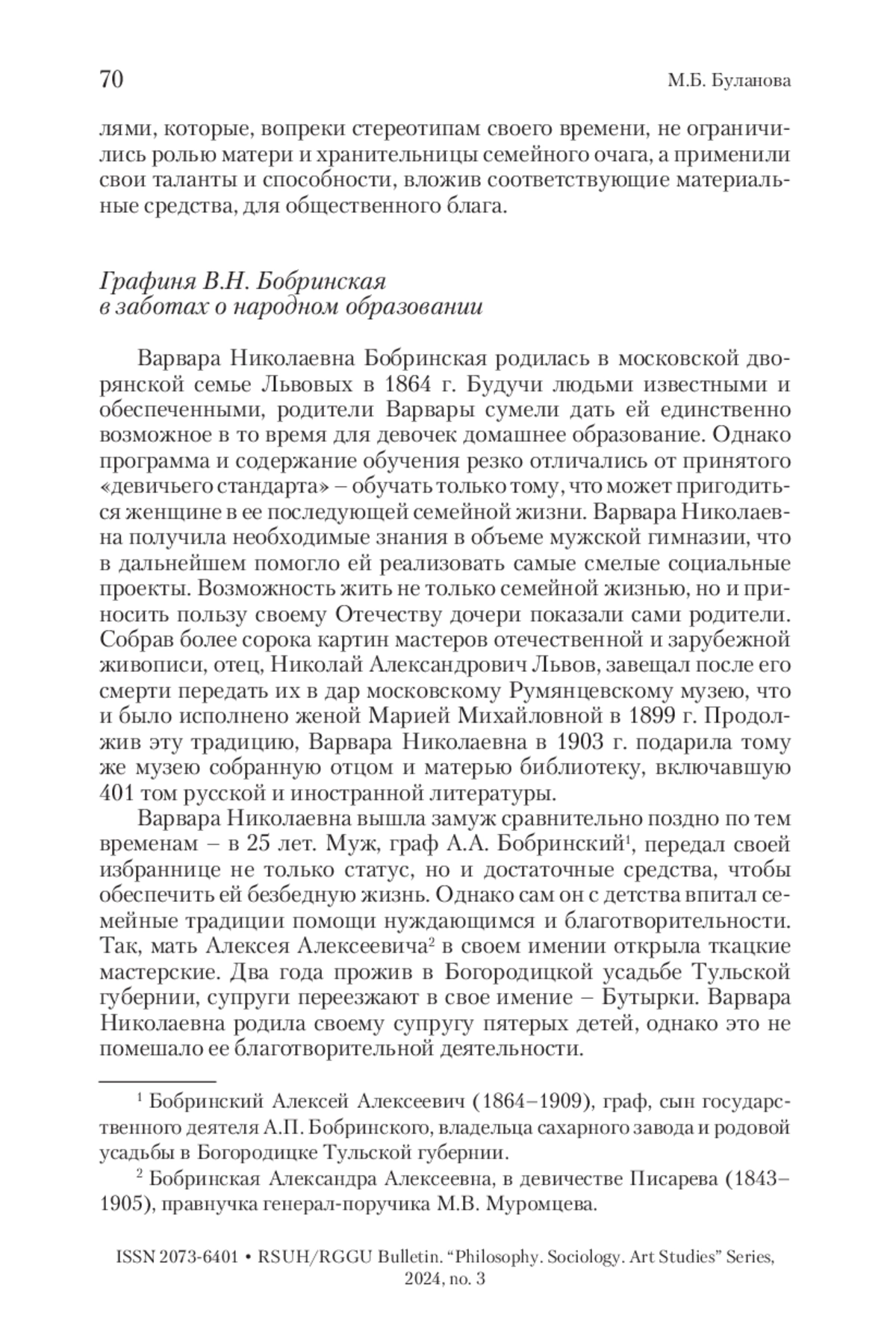 3. Михин 2024 - Михин О.В. Л.А. и А.Л. Шанявские (опыт историко-социологического анализа) // Общественный договор: формы участия интеллигенции в его реализации в России. М.: РГГУ, 2024. С. 246-252.
