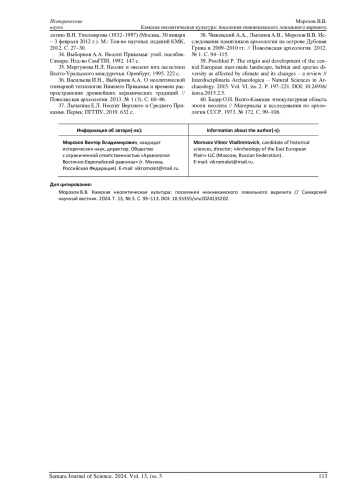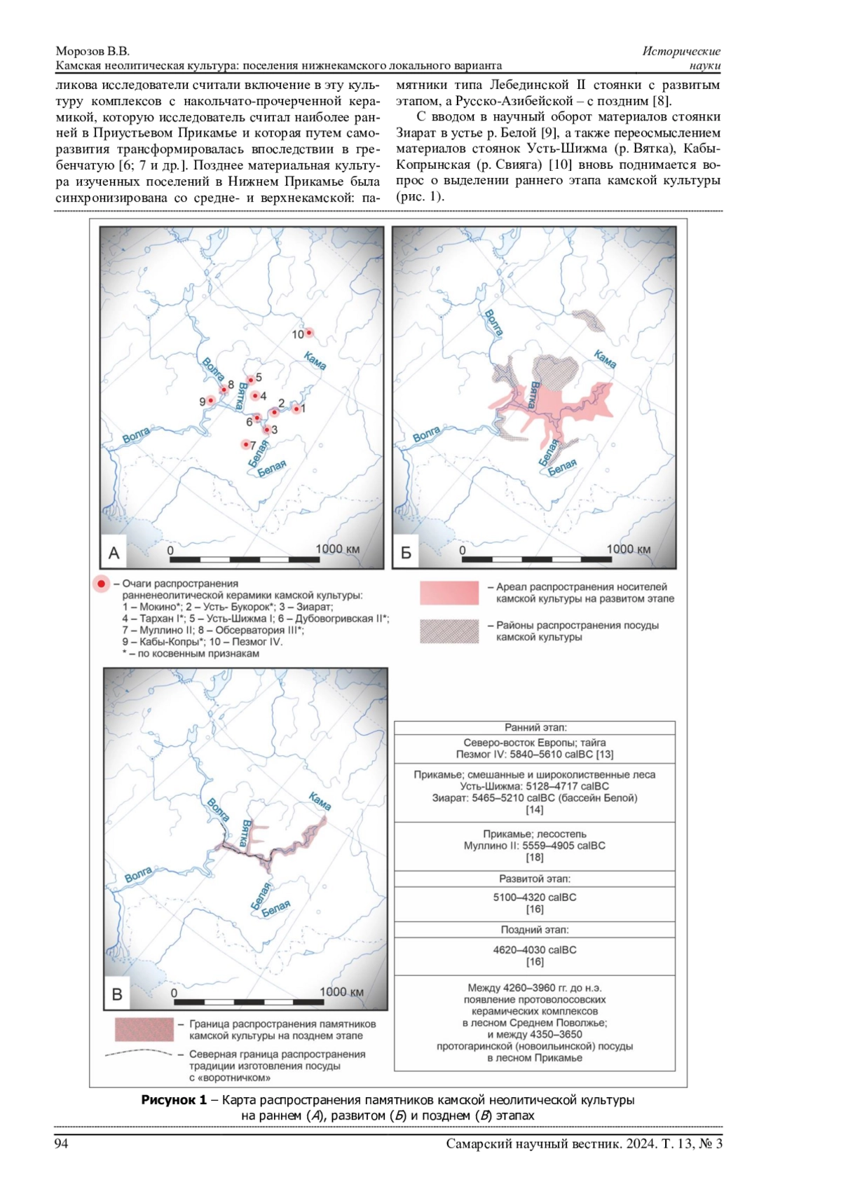 МОРОЗОВ В. В. КАМСКАЯ НЕОЛИТИЧЕСКАЯ КУЛЬТУРА: ПОСЕЛЕНИЯ НИЖНЕКАМСКОГО ЛОКАЛЬНОГО ВАРИАНТА // САМАРСКИЙ НАУЧНЫЙ ВЕСТНИК. 2024. ТОМ 13, № 3