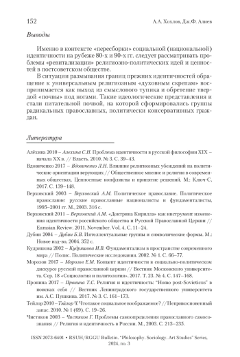 1. Алёхина 2010 - Алехина С.Н. Проблема идентичности в русской философии XIX - начала XX в. // Власть. 2010. № 3. С. 39-43.